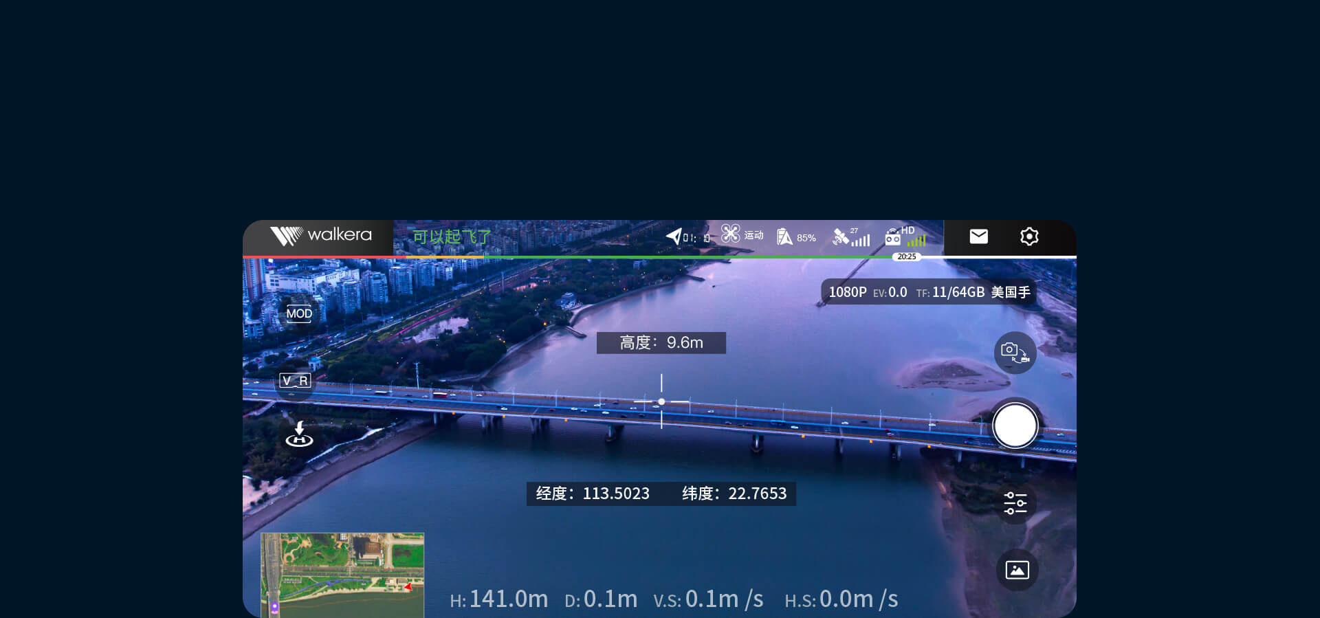 飛控支持用戶在APP操作一鍵全景圖拍攝的功能,進入全景拍照功能,飛控自動調節(jié)云臺航向和俯仰,掃描拍攝多張照片, 自動拼接成為全景圖片。