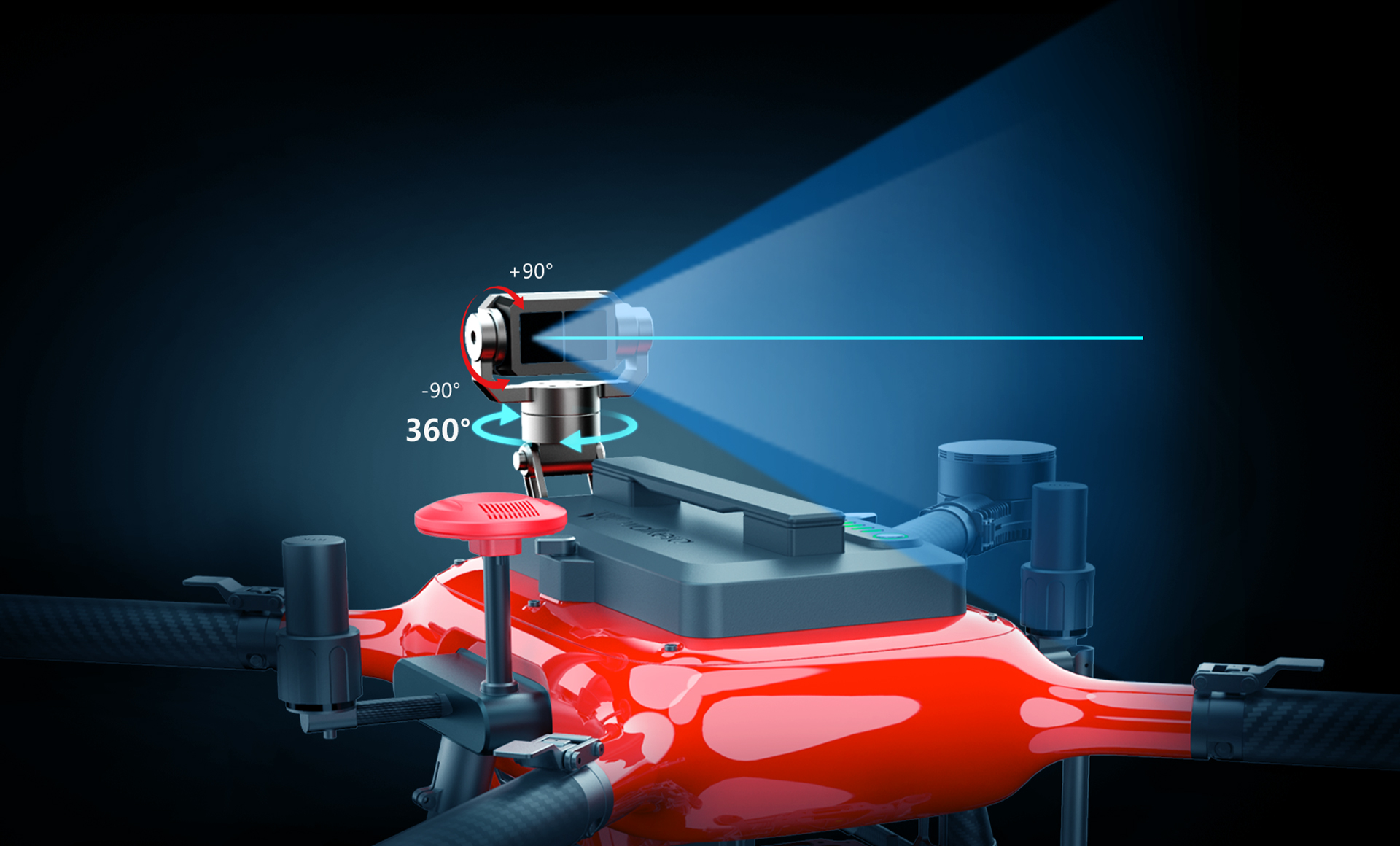 R1000可感知飛行前方40米處障礙物,日常作業時可有效降低常見障礙物帶來的安全風險。主動感知避障功能可全天候工作。航向跟隨激光雷達轉動范圍: