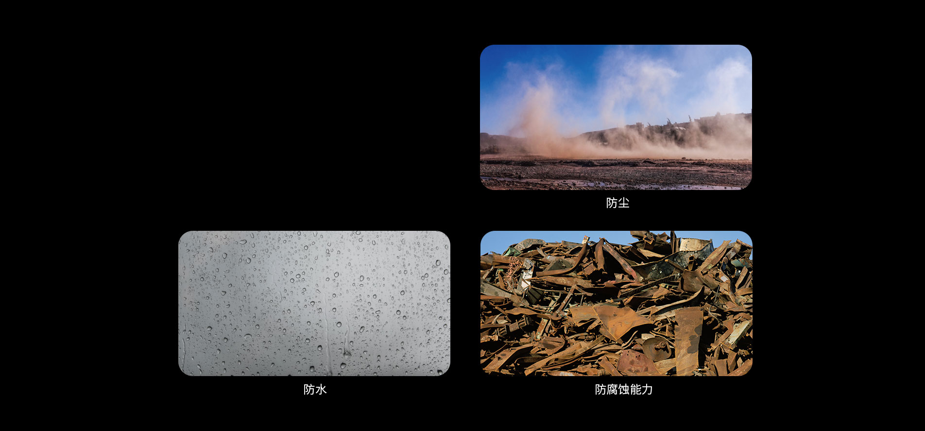 機身采用封閉式防水設計,擁用IP54三防能力,具備工業級防水、防塵、防腐蝕能力。